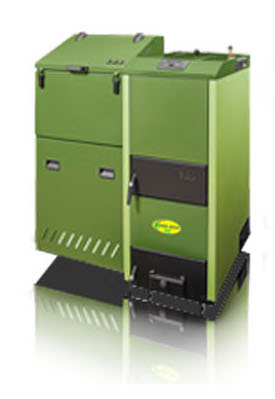 Сучасний повністю автоматизований котел у якому операції здійснюються до мінімуму. Це низькотемпературний котел центрального опалення оснащений автоматичною системою очищення печі. Його конструкція пристосована до високоефективного спалювання вугілля типу горошку та пелети. Котел працює з використанням командного контролера з : • Шнековою подачею палива • Обертовим самоочисним пальником зробленого у формі чашки • Вентилятор нагнітання повітря у піч • Електронним контролером температур Паливо для процесу горіння автоматично транспортується з паливного бака розташованого поруч котла за допомогою шнекової подачі. Паливо подається у чавунний пальник (реторту) разом з нагнітанням повітря за допомогою вентилятора де і проходить сам процес горіння. Над пальником розміщена чавуна плита яка рівномірно роз приділяє тепло на теплообмінники (див. схема 7 позиція). У кінцевій фазі спалювання попіл переміщається на обертову реторту після чого падає до камери зольника . У якій для зручності видалення золи є ящик що витягається. Ефективність котла дозволяє спалювати необхідну кількість палива для підтримки заданої температури. Контролер безперервно вимірює температуру води у котлі та на основі цього керує шнековою подачею палива та вентилятором. Одночасно котел керує насосом центрального опалення, гарячої води ( якщо система обладнана насосом), гагачої підлоги та циркуляційним насосом. Перевагою роботи котла є обслуговування, що полягає у періодичному поповнені палива у контейнер та усунення попелу без необхідності гасіння котла. Після розпалювання котел не вимагає постійного обслуговування і його експлуатація може відбуватися у безперервному режимі протягом усього опалювального періоду. Котел також має можливість роботи у аварійній ситуації. Чавунна решітка яка монтується по обох сторонах реторти у топці.( додаткова опція вказується при замовленні) У разі використання обертового пальника опція аварійного паління не використовується. Котел може працювати поза опалювальним сезоном з бойлером обігріваючи теплу воду. ВИДИ ПАЛЬНИКА Чавунний пальник,обертовий пальник Котел випускається у потужностях від 17 до 300 Використовується котлова сталь марки P265GH товщиною 6мм. Та більше 58kW 8мм. Гарантійний термін 5 років Електрообладнання 2 роки